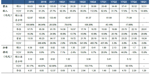 锦江:锦江17年公司旗下的铂涛业绩显著改善、维也纳高增长释放业绩,净利润增长27%,2018年第一季度扣非后利润有33%的增长,铂涛和维也纳表现出色。锦江业务有小幅增长,锦江在上海拿出很多酒店帮助铂涛和维也纳打造中端旗舰店,并且锦江还有部分升级改造的,短期内对业绩是有一点影响的,但锦江的原有业务还是增长的。
