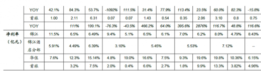净利润方面,华住盈利水平最佳,如家直营占比高业绩波动较大,锦江出售长江证券平滑业绩。