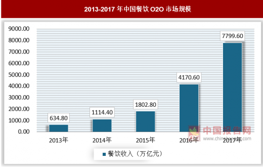 互联网浪潮的冲击下,餐饮行业的互联网化飞速发展。从最初的点评模式开始,团购、外卖等诸多模式不断涌现,当前,餐饮行业已成为本地生活服务行业中互联网化程度最高的行业之一,订外卖、在线预订、团购都已经成为消费者就餐的常规选择。2017年,中国餐饮o2o行业市场规模已达7799.6亿元,较去年同期增长87.0%,发展速度令人惊叹。