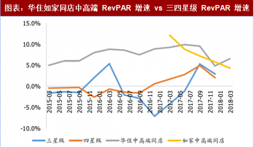 各酒店集团中高端产品景气度也高于行业。从各酒店集团的中端产品来看,酒店集团中高端同店 revpar 增速长期好于三四星级酒店 revpar 增速,酒店集团的中高端产品景气度显著好于行业。