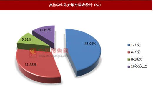 有调查问卷显示,有85%的高校学生订过外卖,超过40%的学生平均每周订外卖1-3次,超过30%的学生每周订外卖4-7次。