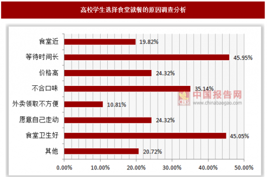 学校食堂每次饭点都会拥挤不堪,排队吃饭要花费大量的时间,而且食堂的饭菜口味单一,学生宁愿吃泡面都不愿意去食堂吃,这才有了外卖市场的火爆。无独有偶,快捷方便的就餐形式——外卖,更符合符合学生的心理预期和生活习惯。