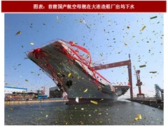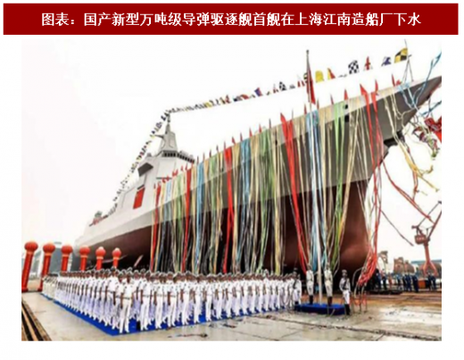 2017 年4月26日,首艘国产航母举行下水仪式,代表了我国国产航母实现零的突破。6月28日,首艘国产万吨级驱逐舰正式下水,该舰型与现有舰型相比有很大进步。我们认为随着重要海军装备领域的技术突破,未来以航母为中心的航母战斗群建设有望成为海军装备发展的重点。航母、驱逐舰等海军装备技术难度大、价值量高,有望带动相关产业链投资机会。