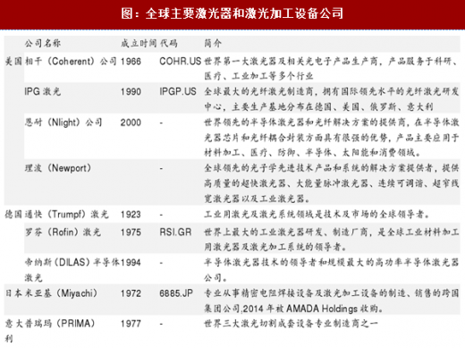 图:全球主要激光器和激光加工设备公司