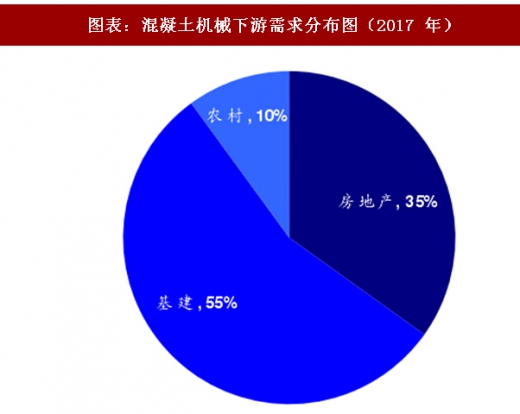 混凝土机械终端下游分布与商用混凝土使用范围基本一致,主要是房地产和各类基础设施建设、城市建设、农村建设等领域,我们根据固定资产投资比例测算判断当前终端需求分布约为:房地产建设需求占比 36%,各类基建占比超过 50%,而农村需求占比也达到约 10%。然而由于不同种类下游的施工中混凝土机械的使用强度有一定差异,房地产建筑高度较高、对于泵送设备的需求量最大,因此我们结合产业调研的信息判断房地产在混凝土机械中的需求占比实际上可能超过 50%,是最为重要的一个下游。