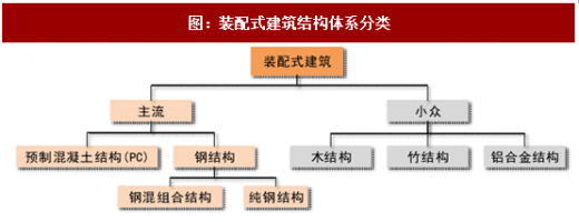 从运用的建筑材料上来讲,装配式建筑可以分为预制混凝土结构(pc)、钢结构、木结构、竹结构和铝合金结构等,其中与为目前装配式建筑中的主流体系。其中装配式混凝土建筑是指建筑的结构系统由混凝土预制构件构成的装配式建筑,装配式钢结构系统指的是建筑的结构系统由钢构件构成的建筑。