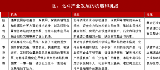 认为,相较于美国gps系统40多年的建设及其全球产业发展而言,北斗刚刚进入全球组网阶段,系统仍在建设,产业仍不够强大,国内相关技术和产品的全球市场占有率和国际竞争力上,与发达国家相比仍存在差距,未来的发展是机遇和挑战并存,总体则是机遇远大于挑战。