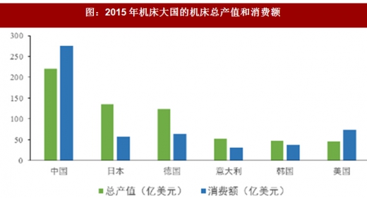机床是装备制造业的“工作母机”,是加工制造的关键装备,几乎所有金属切削、成形过程均需借助机床实现,机床的加工复杂度、精度、效率和柔性直接决定一国的制造水平,在装备制造业中战略地位突出。从世界范围内来看,2015年中国、日本、德国、意大利和韩国的机床产值位居前五名;中国、美国、德国、日本、韩国的机床消费额位居前五名。2015 年中国机床总产值为221 亿美元,占当年全球主要机床生产国(地区)总产值的27.56%;2015 年中国机床总消费额为275 亿美元,占当年全球主要机床消费国(地区)消费额的34.82%。随着经济的快速发展和固定资产投资的增加,我国已成为世界第一大机床生产国和消费国。