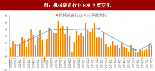 机械装备行业roe进入上行通道:机械行业roe水平变化表现出明显的周期性:2002~2007年为上升周期;2007~2011年为平稳周期;2011~2016年为下降周期。每个周期均持续大约4~5年,是制造业增速、政府调控的共同作用的结果。从2016年三季度开始,机械行业roe水平开始企稳回升,预计将成为新的5年周期的开启。