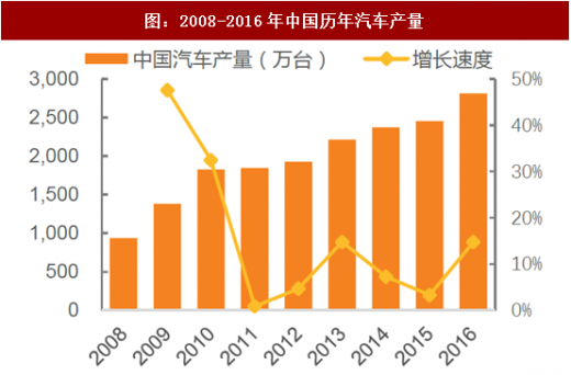 注塑机和压铸机主要下游应用行业包括汽车、3c、、医疗器械、包装、建材等。其中,汽车行业是目前注塑机与压铸机的最主要市场。汽车塑料零部件主要应用在保险杠、车灯、仪表盘和车门等方面,具有重量轻、设计灵活性强、制造成本低、性能优异等优势;而压铸件则广泛应用于汽车发动机上下缸体、变速箱壳体、油底壳、化油器壳体及方向盘等四十多种关键零部件的制造,具有重量轻、耐腐蚀等优势。2011年以来,我国汽车销量稳步增长,2016年,已经突破2700万产销量。