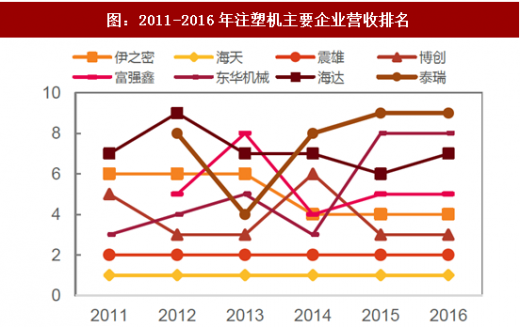 在注塑机市场方面,目前国际市场的主要参与者为中国、德国、奥地利和日本,但2015年我国进口注塑机总额仍然占到国内需求的15%,其中以高精度、大型注塑机为主,主要用于电子通讯产品的精密零部件生产。目前国内市场市占率最高的为海天国际,公司在国际市场的占有率位列第二位,伊之密则在排名上稳定前进,逐步逼近一线厂商。
