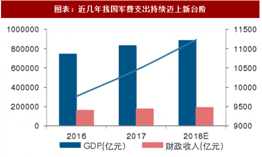 阶段四:2016 年至今,我国军费进入新的稳定发展期。进入十三五规划以后,中国军费的增速有所降低,这与新常态下的经济发展形式有着密切关系。2016 年,我国 gdp 增速为 6.7%,财政收入增速为 4.5%,均为历史新低,我国军费增速相对来说仍维持在适度水平。2018 年公布国防军费预算为 1.11 万亿,增速达 8.1%,军费增速相比“十二五”放缓,但增速提高且发展质量提高,当前军费使用更注重先进性、作战性与有效性。