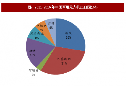 图:2011-2016年中国军用无人机出口国分布