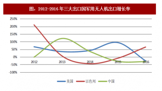 图:2012-2016年三大出口国军用无人机出口增长率