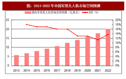 《简氏情报评论》的报告显示,今后十年,在全球防务和安全市场上,无人机的份额将从2015年的64亿美元以每年5.5%的速度增长。据瑞典斯德哥尔摩国际和平研究所发布的2016年全球军费开支趋势报告显示,2016年全球军费开支同比增长0.4%。可以看出,军用无人机的采购增速高于行业。