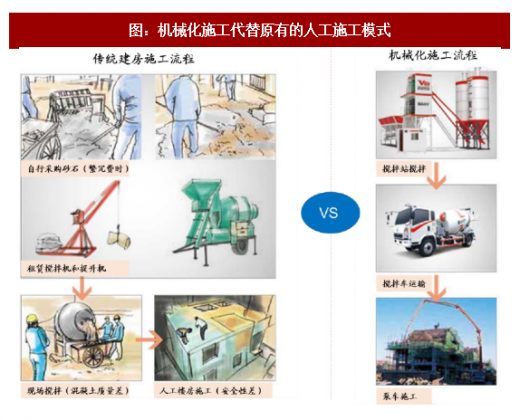 农村市场主要催生了和短臂架泵车等工程机械产品的需求。我们从2011-2017年大中小挖的销量结构可以看出,小挖2017年的销量水平达到了8.6万台,相比于历史高点的7.5万台,同比提升了15%左右。而中大挖均还未达到历史最高水平。这充分说明了小型挖掘机的需求下垫面相对于中大挖而言有明显的扩张。根据终端反馈,目前农村市场的主要需求是6吨以下的小型挖掘机。新农村建设中的农村自家建房和农村建设中低楼层的,因其施工的范围较为狭窄,所以大型混凝土机械设备无法顺利在这样的施工工况施工,所以泵车的臂架长度通常在30米以内,目前市场上各个厂家的27、28米泵车是专门针对农村地区施工而研发生产的,车身较一般泵车车身要小,即使施工场所空间小,短臂架泵车也能顺利施工。