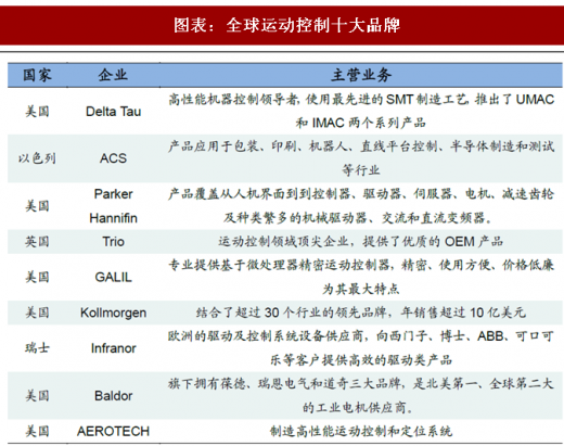竞争格局:硬件差距较小,难点集中于软件。控制器本质上就是一个数据处理器, 随着半导体技术的成熟,半导体芯片的性价比越来越高,因此控制器在硬件上并无太高门槛。在机器人的核心零部件中,控制器的技术难度是最低的,国内企业开发 的控制器产品已经可以满足大部分功能要求。