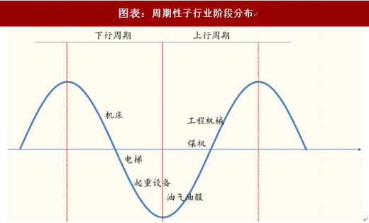 总结典型周期子行业的周期分布,工程机械、煤机、油气油服位于上行周期,电梯、起重设备、机床位于下行周期。