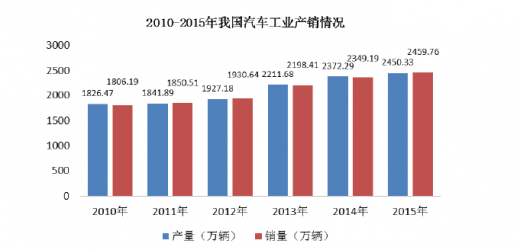 2015年,中国汽车产销总量均超过2,400万辆,产销量继续保持世界第一,根据中国汽车工业协会的预测,2016年中国汽车全年销量为2,604万辆(其中国内销量2,540万辆,出口量64万辆),增速约为6%。