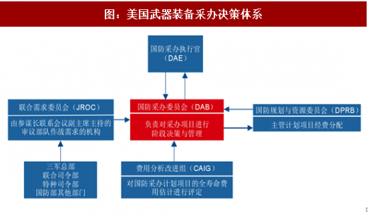 美国国防部:国防部是武器装备采办的集中统一管理部门,主要负责国防科研和武器装备研制、生产、采购、试验、鉴定、维修、保障全过程的统一管理和协调。