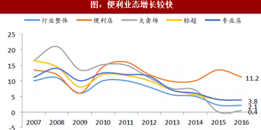 在行业整体增速放缓的情况下,便利业态增长较快,未来社区型便利超市将成为线下商超主战场之一。