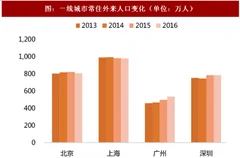大城市生活成本攀升带来人口从一二线城市的逐渐流出,北京、上海常住外来人口数据于近2年首次出现下降。根据国家统计局的人口统计数据,一线城市常住外来人口的增长或将迎来拐点。截止至2016年末,北京市常住外来人口907.5万人(-15.1万),上海980.2万人(-1.5万),广州533.9万人( 37.9万),深圳786.0万人( 3.1万人)。上海已经连续2年下降,而北京则是08年来首次出现常住外来人口减少,减少幅度为15.1万人。