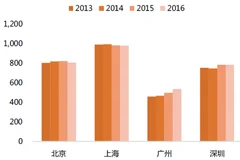 大城市生活成本攀升带来人口从一二线城市的逐渐流出,北京、上海常住外来人口数据于近2年首次出现下降。根据国家统计局的人口统计数据,一线城市常住外来人口的增长或将迎来拐点。截止至2016年末,北京市常住外来人口907.5万人(-15.1万),上海980.2万人(-1.5万),广州533.9万人( 37.9万),深圳786.0万人( 3.1万人)。上海已经连续2年下降,而北京则是08年来首次出现常住外来人口减少,减少幅度为15.1万人。