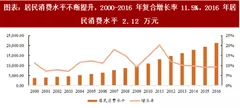 1、居民消费水平 2016 年达 2.12 万元,2000-2016 年复合增长率 11.5%