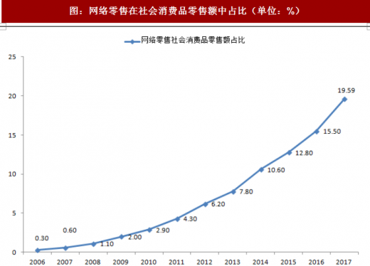 2018年1-4月份,全国网上零售额2.58万亿元,同比增长32.4%。其中,实物商品网上零售额1.95万亿元,增长31.2%,占社会消费品零售总额的比重为16.4%;在实物商品网上零售额中,吃、穿和用类商品分别增长44.9%、28.0%和31.1%。