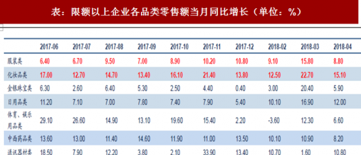 可选消费中化妆品、服装增速亮眼