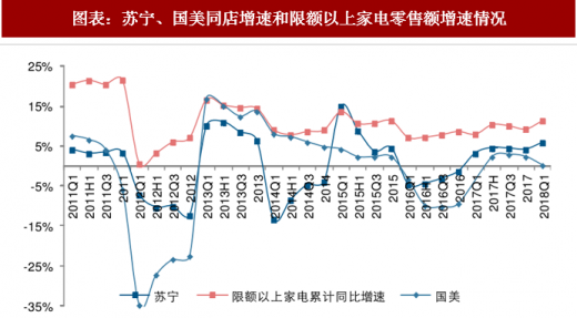 苏宁起步于专业连锁,其所在的家电及市场是较早且较多被电商分流的品类之一,但电商对行业的洗牌和出清,反而给了多年承压成长的线下龙头较好的市占率提升机会。经过多年业态模式探索,苏宁已经逐渐形成了横向和纵向的门店类型延拓方式,横向“去电器化”拓展品类:增设生活综合型广场,探索便利店、母婴、生活超市、品质家居等其他垂直类专营店连锁,以更小的专业店形式满足居民更加细分领域的生活需求;纵向下沉渠道:公司借助线上线下融合模式打造出“苏宁易购直营店”的小店形式快速渗透三、四级家电 3c 连锁市场。在此各类门店运营逐渐清晰基础上,公司基于自身的供应链基础、门店管理经验和后端管理系统开始推出各类型的零售云加盟店,渗透更低线的市场。业态组合的不断优化也为公司内生增长注入动力:公司同店一直保持优于同业的增长速度。