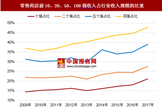 截至到2017年年底,我国药店数量达到45.4万家,其中连锁药店有22.9万家,连锁化率比上年的49.4%增长了1%。而单体药店则有下降趋势,近五年来,数量从2013年的27.4万家下降到2017年的22.5万家。