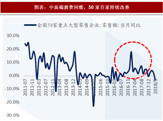 本轮消费复苏从2017年的高端、一二线反弹,到2018年的中档、三四线崛起,消费复苏的长期驱动来自 于居民消费能力的真实提升,持续性强不应为短期月度数据波动扰乱预期。