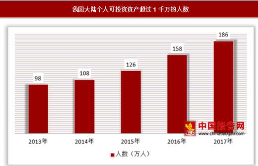 随着我国经济的高速发展使必然促使高净资产人群的数量也不断增加。《仅中国大陆可投资资产超过1000 万人民币的个人高净值人群数量在 2013年就达186余万人,接近是 2013年此类客户数量的2倍,并且人数在逐年递增。