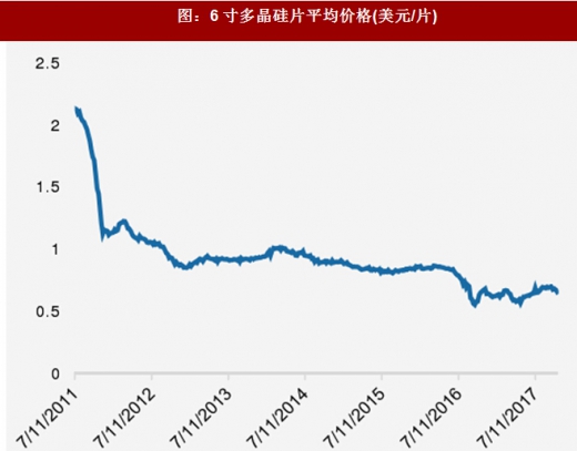 伴随着光伏组件价格的下降,太阳能级多晶硅和片的价格也持续下降。在硅料环节表现为改良西门子法的应用和大规模产能的投放,使得成本和价格快速下降;硅片方面,随着拉棒(铸锭)速度的增加和切片技术的改良,推动硅片价格持续下降。