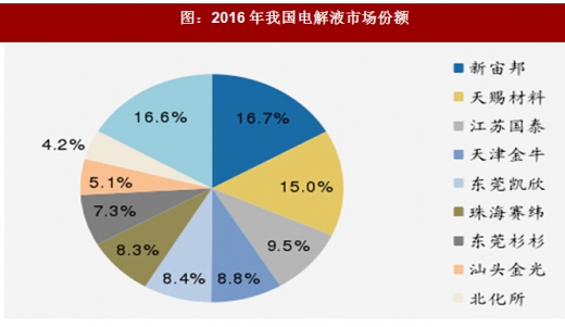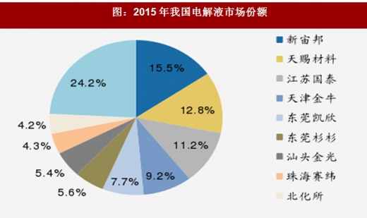 目前电解液格局在新能源汽车产业链中最为清晰,新宙邦、天赐材料、江苏国泰已经形成第一梯队,并且天赐材料、新宙邦市占率仍然保持不断提高。