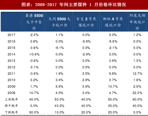动力煤方面,多地燃煤取暖恢复,春节因素影响较小,火电需求有望维持稳定:从 08-17年的历史情况来看,受春节因素影响,1月火电发电量环比前一年12月平均回落6.1%。但其中春节不在1月的2008年、2011年、2013年、2015年、2016年,1月火电发电量环比平均小幅下滑1.9%,17年春节同样在2月,同时,由于煤改气过快推进致多地“气荒”,相关部门或地区再度恢复燃煤取暖方式,预计1月火电需求有望维持稳定。