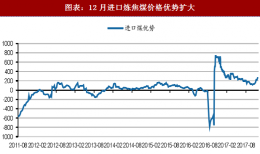 图表:12月进口炼焦煤价格优势扩大
