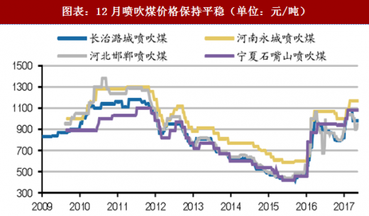 图表:12月喷吹煤价格保持平稳(单位:元/吨)