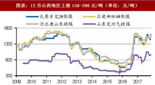 图表:12月山西地区上涨150-200元/吨(单位:元/吨)