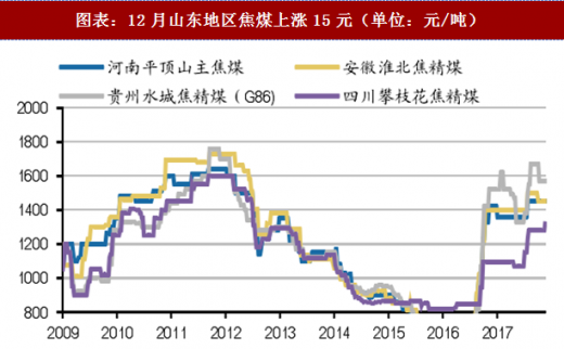 图表:12月山东地区焦煤上涨15元(单位:元/吨)