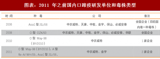 通过模拟回归的方法,动保行业收入规模与毛利率正相关,规模效应明显。大企业毛利率扩大,小企业毛利率缩水。悬浮培养工艺是市场苗可以实现产业化的基础,虽然在硬件上已不是行业壁垒,但是在更广泛的应用和系统化的管理上仍需要时间积累才能不断纯熟的。工艺升级背后是研发支持,总结来看研发投入主要沉淀在以下四点:毒株储备、团队协作、硬件设备、实验环境。以毒株储备为例,兰研所是国内口蹄疫研发最具权威也是病毒储备最丰富的机构,1999 年派员去美国交流,现拥有世界上唯一的 500 余株口蹄疫毒株库。