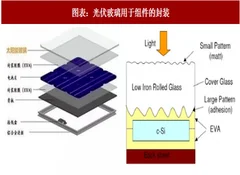 晶硅电池所用的光伏玻璃同浮法玻璃有所区别,光伏玻璃的上表面是绒面,使得直射到组件表面的光不容易产生镜面反射,下表面是压花面,可以增强同eva胶膜的粘合力。