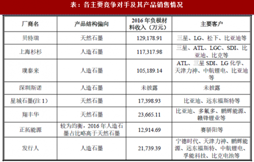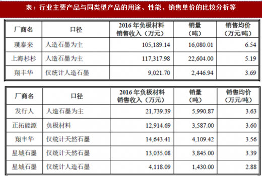 (2)翔丰华、正拓能源、发行人、星城石墨等厂商普遍为近年来崛起的新兴厂商。受到近年来动力电池市场快速发展的影响,上述厂商普遍以动力电池市场为主。相比龙头企业,上述厂商在产品性能、品牌溢价方面尚有差距,客户结构也在不断优化之中。