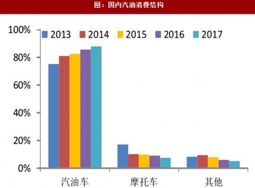 造成柴汽比差异的主要原因是汽柴油消费结构的不同以及企业旗下加油站数量的差异。汽油车持续占据汽油消费结构的绝对性优势地位,2017年占比87.82%。同时,我国汽油资源更多地依赖加油站进行销售,并且私家车主对油品品牌和品质要求较高。而加油站方面,中石化及中石油较独立炼厂占有明显优势,中石化和中石油的加油站数量占比超过一半,达到53.12%,而山东独立炼厂通过自营、租赁、加盟等经营方式,所拥有的加油站占比仅0.6%。终端零售量来看,2017年中石化终端零售量占比近7成,而独立炼厂通过自有终端零售量占比仅不足2%。因此,现阶段独立炼厂在加油站终端方面表现仍较为薄弱,进而限制了独立炼厂汽油方面的销售。