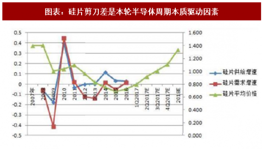 2016-2017 年剪刀差的持续扩张,半导体硅片涨价对半导体的价格传导、引发行业晶圆产能降阶抢夺,引发整个半导体产业链传导作用意义深远,很难去估量对行业所带来的巨变,因为这个剪刀差形成的时间周期从2008年以来,酝酿时间长达8年,并且从硅片涨价到传导半导体晶圆厂,从12寸蔓延到6寸,时间周期仅有3个月,剪刀差的开口扩张速率上行迅猛。投资半导体板块,必须清楚的理解半导体行业的自身属性。