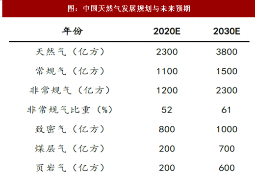 天然气“十三五”规划中提出,致密气勘探开发将以四川、鄂尔多斯、塔里木盆地为重点,加强东部深层勘探开发,保持稳产力争增产,加快鄂尔多斯、四川两大盆地致密气上产步伐,目标2020年产量达到370亿立方米。根据中国工程院的预测,2020年我国致密气产量有望达到800亿方,2020年以后致密气产量稳定增长,2030年预计致密气产量有望达到1000亿方。