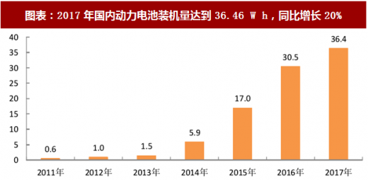 高工锂电调研数据显示,2017 年中国动力电池总产量 44.5gwh,同比增长 44%;根据节能与网合格证数据测算,2017 年中国动力电池总装机量 36.4gwh,同比增长 20%。高工锂电统计显示 17 年底国内动力电池名义产能达到 135gwh,有效产能约为 110gwh;以此推算行业 17 年平均开工率仅为 40%左右。