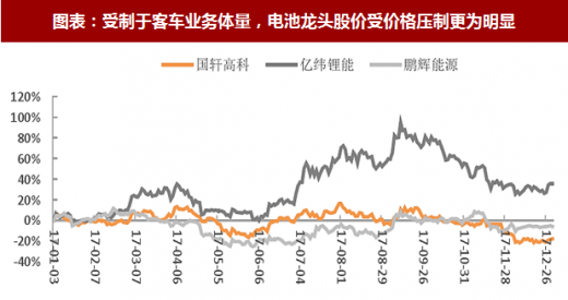 以全球最大动力电池供应商宁德时代的动力电池业务为例,17 年其动力电池产品均价为 1.41 元/wh,较 16年末 2.06元/wh下降 31.6%;毛利率从 16年的 44.84%下滑至 17年的 35.25%,下滑 9.59pct;因此在出货量增加 74%的前提下毛利额下滑 6.3%。因此尽管行业龙头在市场份额、议价能力方面均更有优势,但是受补贴削减后利润下滑的影响也更为显著,公司股价表现受到压制。