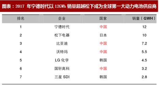 在举步维艰的大环境下,行业中已有真强者崭露头角;17 年宁德时代以 12gwh 动力电池销量力压松下电器,虎踞全球动力电池出货量首位,而全球前七大动力电池供应商中中国企业占据四席,中国已然培养出数家具备较强国际竞争力的动力电池企业。